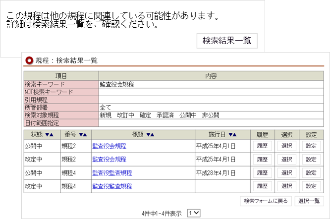 改定時の関連規程チェック機能